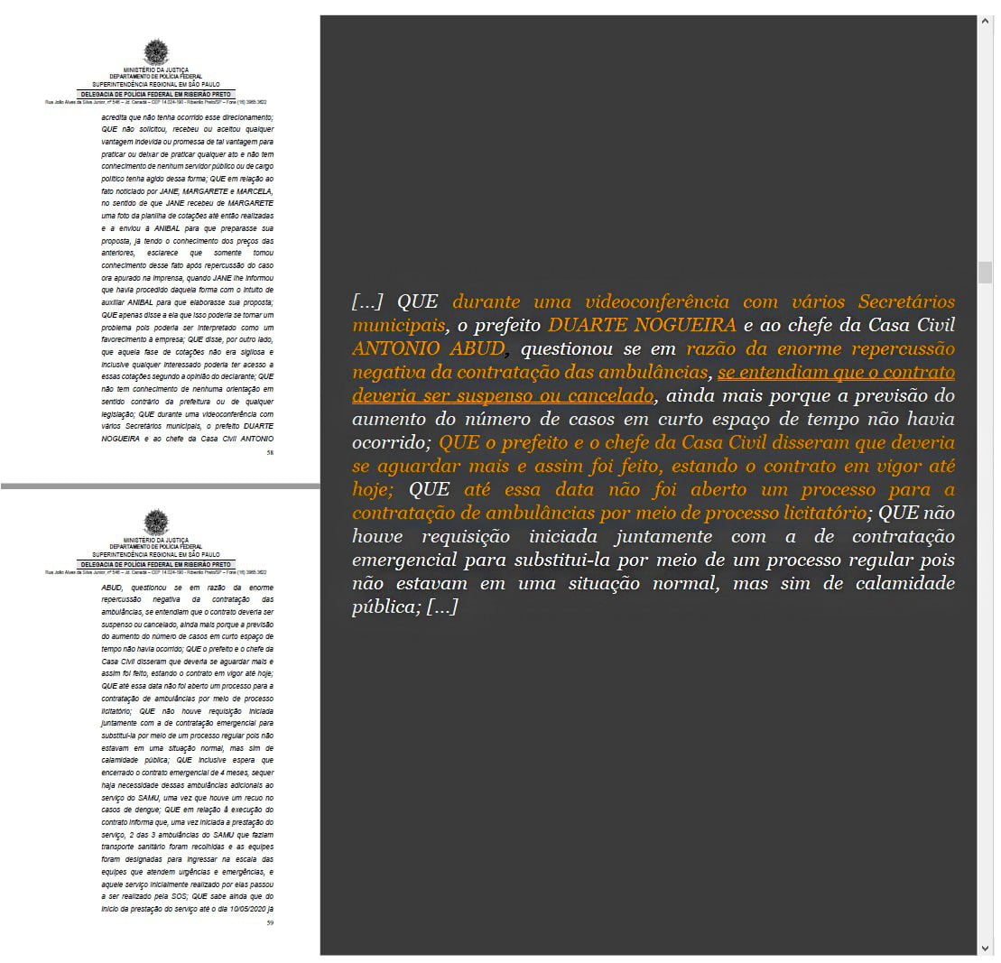 Scarpelini informou à PF que, em reunião online entre Nogueira e parte de seu secretariado, chegou a perguntar ao prefeito Duarte Nogueira e o chefe da Casa Civil, Antonio Abud, “se, em razão da enorme repercussão negativa da contratação das ambulâncias”, deveria o contrato “ser suspenso ou cancelado, ainda mais porque a previsão do aumento do número de casos em curto espaço de tempo não havia ocorrido”.