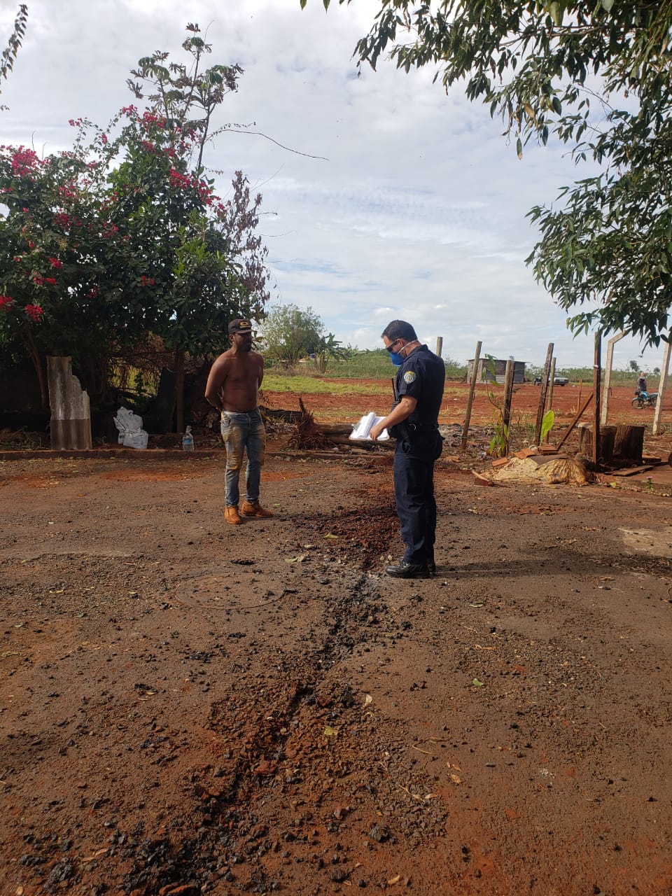 O indivíduo perfurou parte da calçada e do asfalto na rua Jerônimo da Rosa Martins, no bairro Jardim Pedra Branca, para encontrar a tubulação e aplicar o golpe.