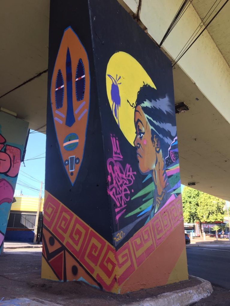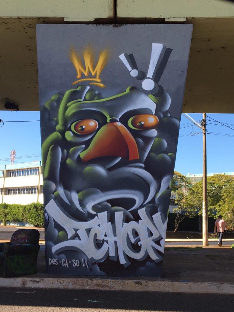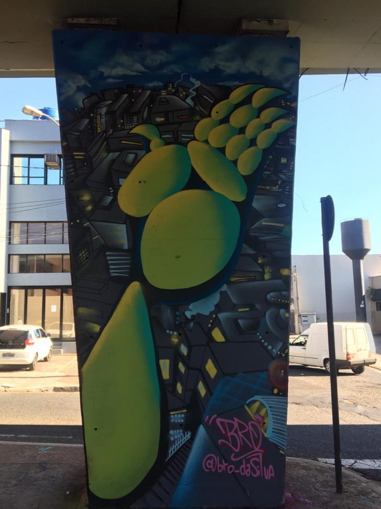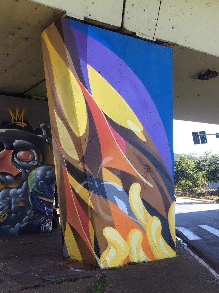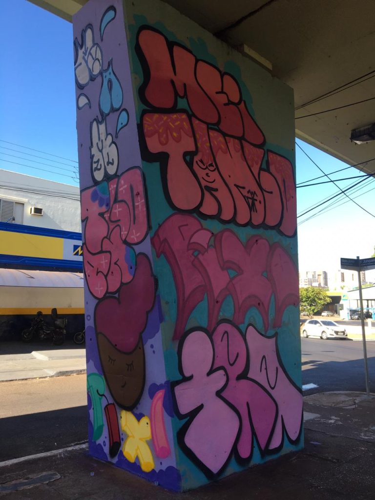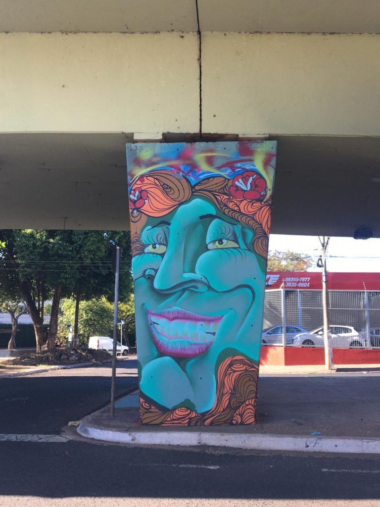 O grupo com 12 pessoas coloriu 8 pilares do Viaduto Jandira Moquenco, no cruzamento das avenidas Independência e Meira Junior, um trabalho que aconteceu de sexta (19) até o domingo (21).