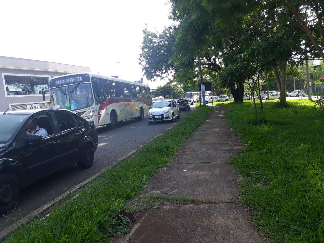 A região da Alameda Botafogo registra trânsito intenso na manhã desta segunda-feira (3), próximo ao Parque Municipal Maurílio Biagi e o Terminal Urbano Dra. Evangelina de Carvalho Passig, em Ribeirão Preto.