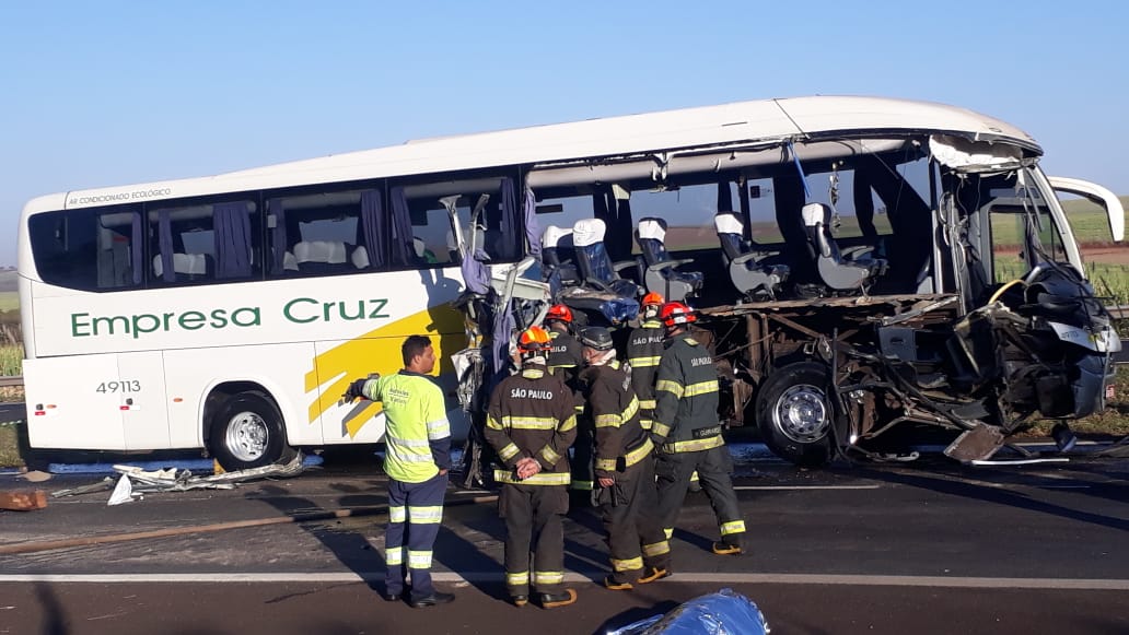 Acidente entre ônibus de trabalhadores rurais e carro na manhã desta quarta-feira (22), na rodovia Altino Arantes (SP-351) no km 27, na cidade de Altinópolis.