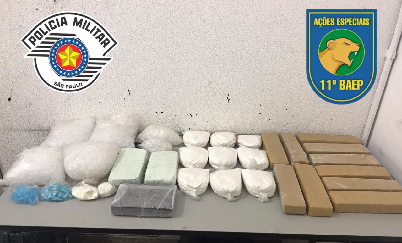 A Polícia Militar prendeu dois homens, de 34 e 41 anos, que tentavam arremessar drogas e celulares em uma unidade prisional, na cidade de Tremembé, no interior do Estado. Na ação, ocorrida na tarde desta quinta-feira (10), 273 porções de drogas entre maconha, ecstasy e cocaína, bem como 160 celulares foram apreendidos.