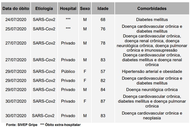 De acordo com a Secretaria de Saúde, os pacientes que morreram eram portadores de comorbidades.